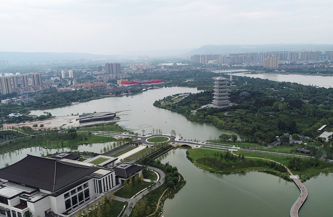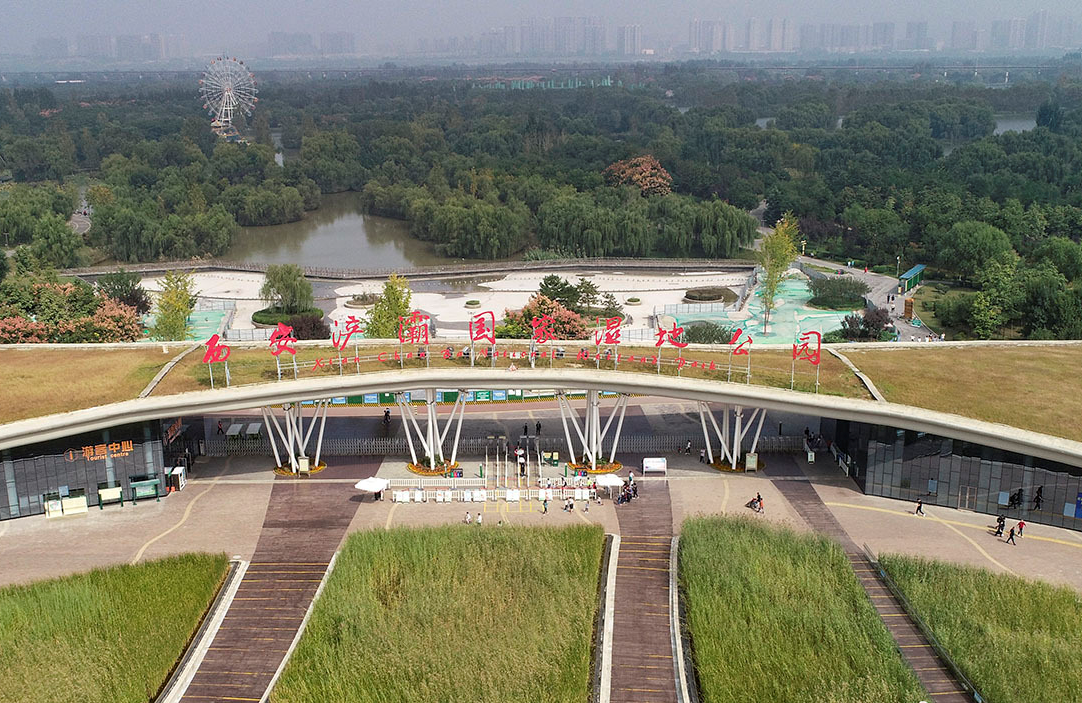 2020年9月26日,航拍陕西省西安世博园,风景如画,绿意盎然。西安世博园位于浐灞生态区,以“时尚、动感、欢乐、健康”作为定位2020年9月26日,游人在陕西省西安世博园游览参观。