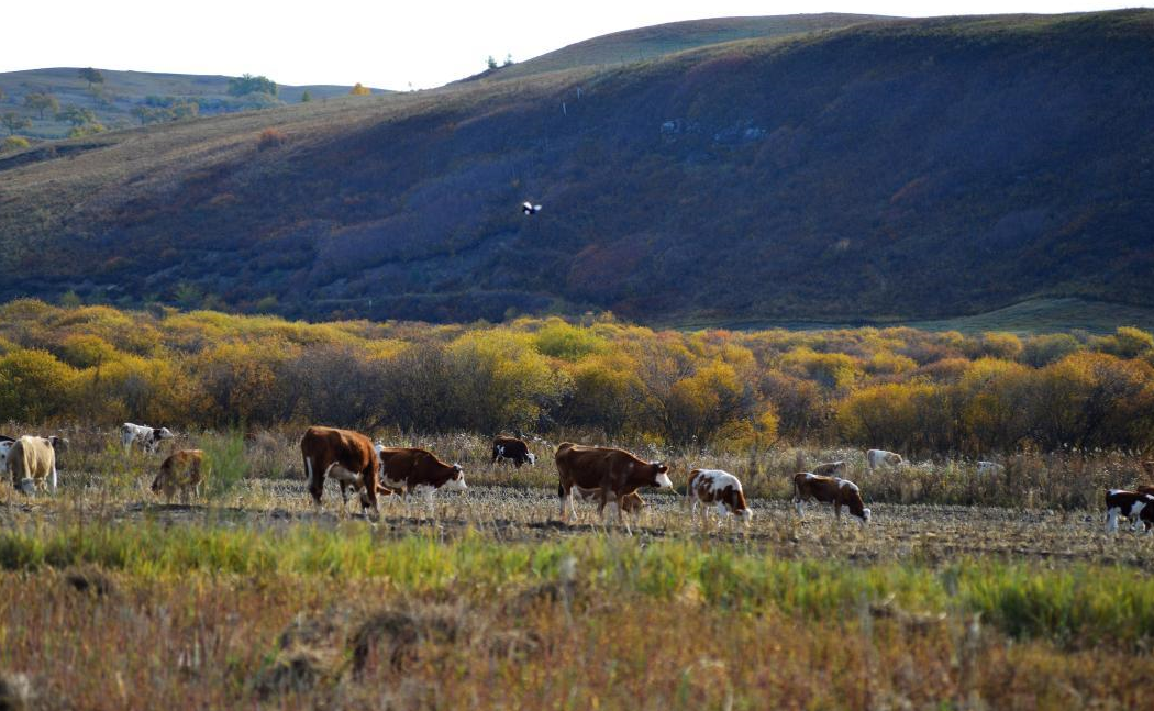 2020年9月29日,远眺坝上草原斑斓的秋景。随着气温转凉,地处河北承德的坝上草原开始进入色彩斑斓的季节,放眼望去,处处呈现出一幅迷人的秋韵图景。