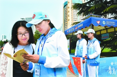 27日,近两万名城市运行志愿者上岗服务上合青岛峰会。新华社发