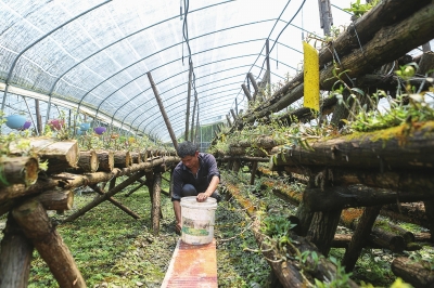 泗店乡余河铁皮石斛基地,发展农产品为旅游商品,游客可以在这儿赏石斛花、品石斛酒 蒋仑摄