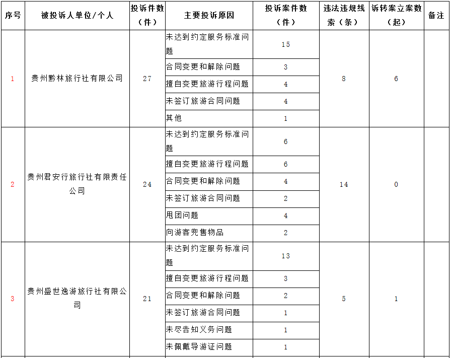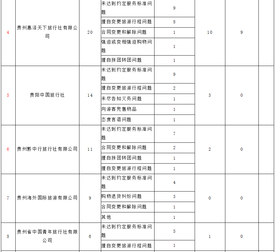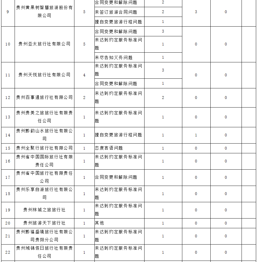 以下为《2018年贵州省暑期旅行社服务质量情况表》。
