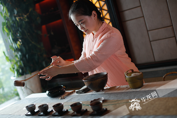 茶艺师手法娴熟。首席记者 雷其霖 摄