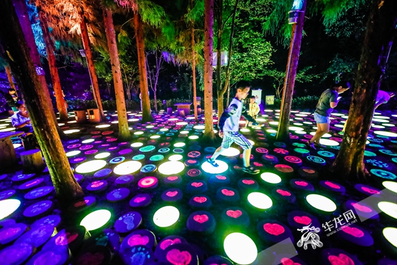 丛林间的灯光感应装置就像一个个“棋子”。首席记者 雷其霖 摄
