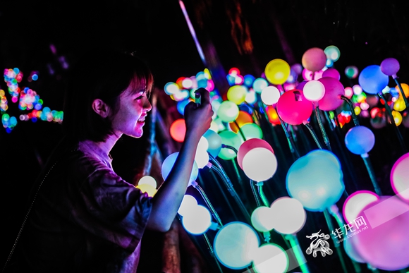 值得一提的是,在“执子之手”“荧光彩跑”等多个夜游节点上,项目设计方通过对现有过河踏步石墩进行改造,平面加宽并置入压感灯光装置,通过游客的踩踏即可发出一系列声光效果。