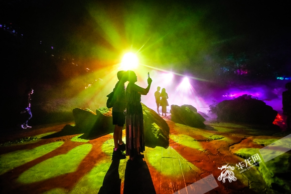游客们在灯影中的剪影。首席记者 雷其霖 摄