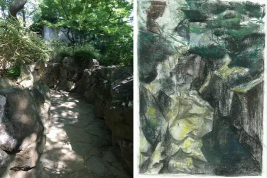 留园植物的遮挡模糊了左右的方向,照片与画来自徐灵杰。