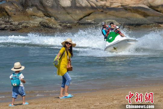 图为国庆节当天,游客在三亚天涯海角景区内游玩。 洪坚鹏 摄