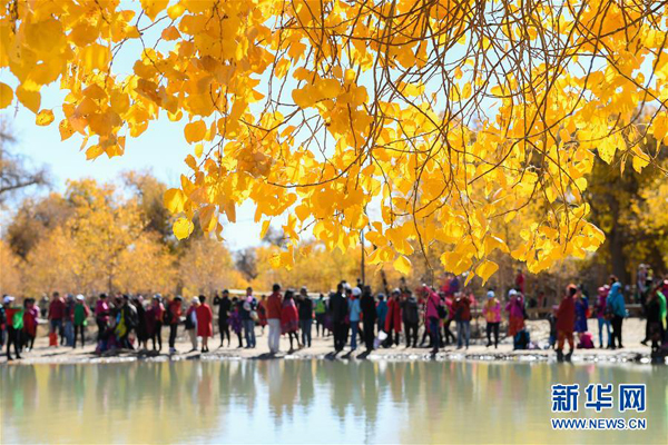 内蒙古自治区额济纳旗胡杨林如同披上金装,成为大漠中的一抹亮色。