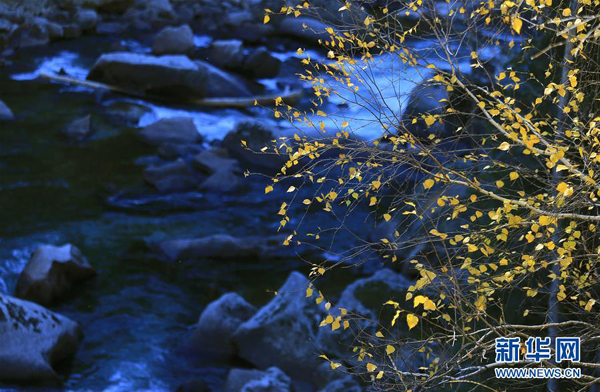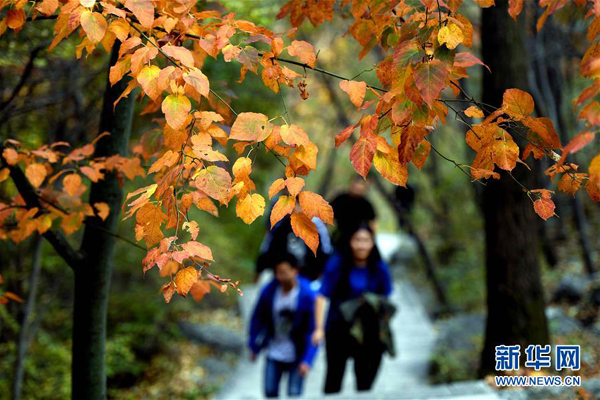 河北灵寿县境内的太行山脉秋意渐浓,色彩斑斓的树叶将太行山装点得分外美丽。
