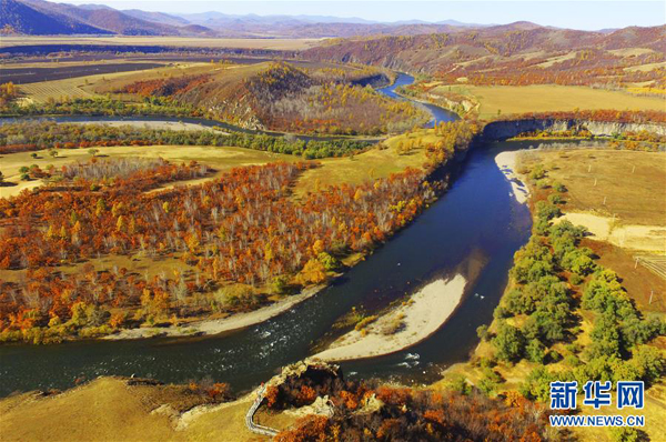大兴安岭南麓的内蒙古呼伦贝尔大地披金,层林尽染,美景如画。