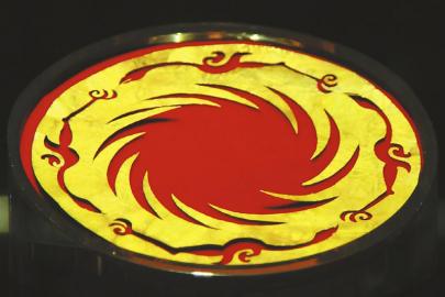 成都金沙遗址博物馆里的“太阳神鸟”金饰(局部)。 (资料图片)