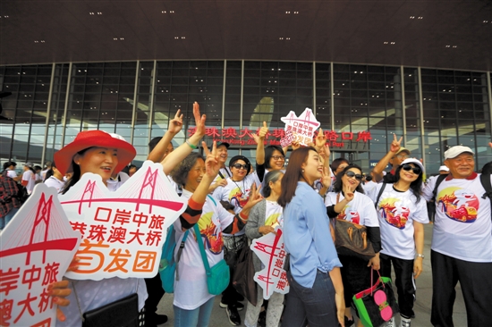 今早,广东某旅行社的港珠澳大桥首发团从珠海口岸出发 羊城晚报记者 宋金峪 摄