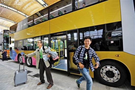 今早,首班由珠海出发经过港珠澳大桥的穿梭巴士抵达香港口岸 羊城晚报记者 宋金峪 摄