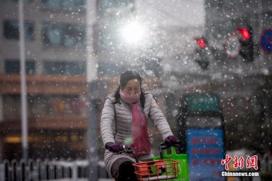 12月5日,山西省太原市迎入冬以来首场降雪,气温骤降,民众冒雪出行。 韦亮 摄