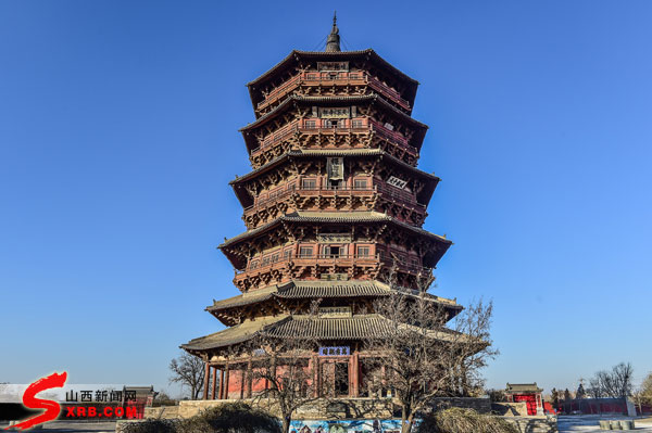 对契丹文明的追寻,当然不止于此。建于辽清宁二年(公元1056年)的应县释迦塔,是全世界现存最高最古老的木制塔式建筑。这是一座是由大辽传奇人物萧太后倡议建设的著名佛塔。在释迦塔的一层,前门楣描绘了三位女性,后门楣还画了三个男性。衣着,发式等特征几乎符合契丹人的特点,显然画匠所描绘的主人公就是辽代某些贵族。应县木塔为皇家所建已成事实毫无疑问,有人猜测是所绘人物分别是辽国的三位太后和三位皇帝。
