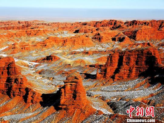 在白雪的映衬下,由近及远,五彩斑斓的峡谷美不胜收。吴学珍 摄