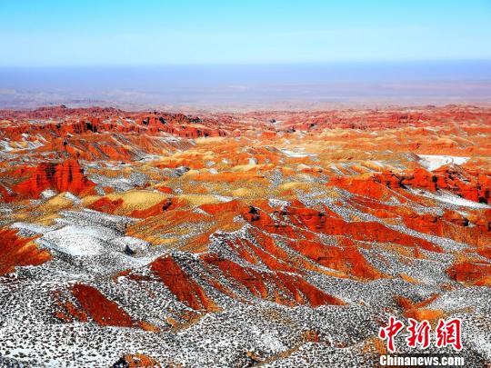 深冬时节,地处甘肃河西走廊中段,祁连山下的甘肃张掖市平山湖大峡谷景区,积雪仍未消融,晴朗的天气里,太阳照耀下的峡谷,红色砂砾岩在白雪映衬下,颜色鲜艳,景色别有一番风味。