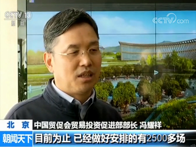 中国贸促会贸易投资促进部部长 冯耀祥:我们安排了丰富多彩的活动,目前为止,已经做好安排的有2500多场。可以说,月月有主题,日日有活动,时时有互动。