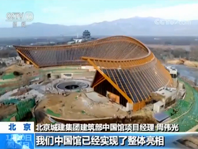 北京城建集团建筑部中国馆项目项目经理 周伟光:目前世园会的建设已经进入冲刺收尾阶段,我们中国馆已经实现了整体亮相,室内装饰装修以及机电安装工作已经完成。目前我们在全力配合展陈单位做好布展工作。