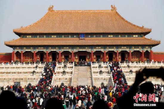 资料图:2月5日农历正月初一,北京故宫博物院人头攒动,大批市民进宫过大年。中新社记者 富田 摄
