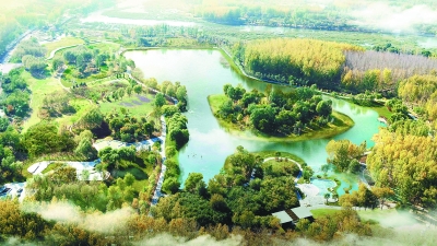 妫水河南岸、世园会园区北侧,留住了一大片自然生态展示区,湿地中央小岛上生长着挺拔的乔木,毛白杨、新疆杨等栽植时间超过20年的大树成荫,100多种植物、鸟类、昆虫在此栖息繁衍,书写着生态绿色的动人故事。60多天后,世界友人们来到世园会园区,不仅能欣赏一场奇花异草的大联展,更能拥抱青山绿水、湿地鸟语,享受人与自然和谐共处的诗意景观。