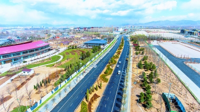 春光明媚,世园会园区周边刚刚铺就的柏油路旁,工人师傅们三五人一组忙碌着,有的安装交通标志牌、路灯,有的栽种国槐、银杏。经过一年多的紧张施工,8条世园会配套道路已于近日完工且具备通车条件,正在进行补绿种绿等工作。这8条道路将分别以“多彩花境”“锦绣绿荫”“红粉映翠”“花香汇景”等为绿化主题,形成一街一品,编织一张通往园区的多彩园艺路网。