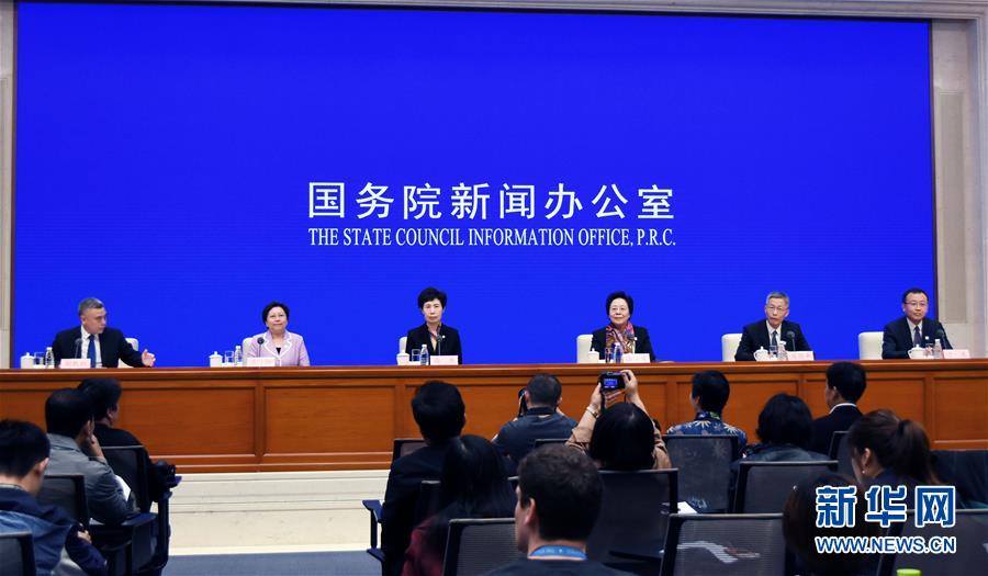 4月24日,国新办在北京举行新闻发布会,请中国贸促会会长、北京世园会组委会副主任委员、北京世园会执委会执行主任高燕,中国花卉协会会长、北京世园会组委会副主任委员江泽慧,北京市副市长、北京世园会执委会副主任兼秘书长王红,北京世园局常务副局长周剑平,北京市延庆区区长于波介绍2019北京世界园艺博览会筹备工作情况,并答记者问。 新华社记者 潘旭 摄