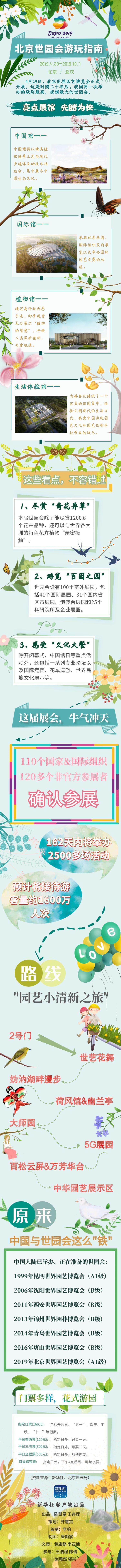 2019年中国北京世界园艺博览会开幕在即!你知道吗?这是时隔二十年后,我国再一次举办的级别最高、规模最大的世园会。长城脚下、妫水河畔,这里百花竞放、万木葱茏,是亲近自然的好去处。心动了吗?小编为你备了一份“干货”攻略,带你一起先睹为快!