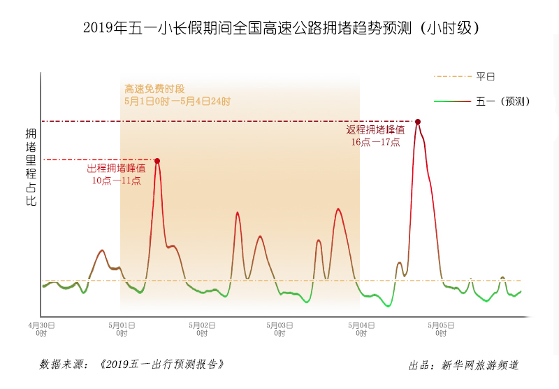 小长假最后一天5月4日14时-20时为返程高峰,峰值出现在16时-17时,返程整体交通压力高于出程。