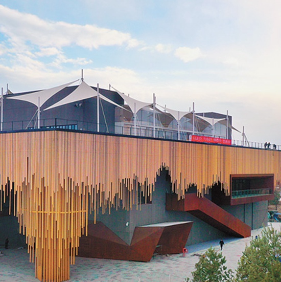 植物馆外面褐色的钢管象征着植物的根系。人民日报记者贺勇摄