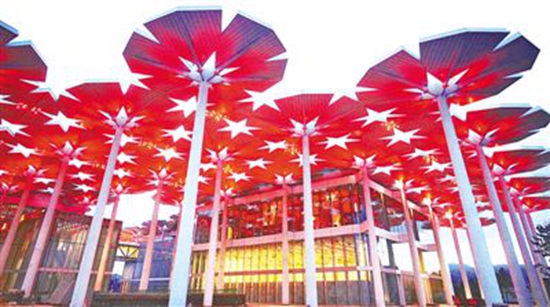 由94把巨大钢“花伞”构成的国际馆,宛如一片绚烂的“花海”。人民日报记者贺勇摄
