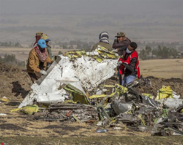 ▲当地时间2019年3月11日,埃塞俄比亚比绍夫图镇附近,救援人员继续在坠机现场清理飞机残骸和搜寻遇难者遗体。