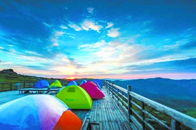 嶂石岩九女峰是露营的佳处,爬到峰顶有一片平坦的空地,在那里可以搭起帐篷,赏九女峰日出美景。