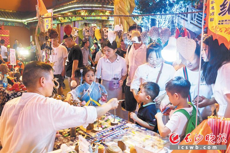 火宫殿里,游客们正在挑选非遗小物品。