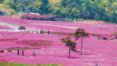 4月6日,江苏省句容市芝樱小镇400余亩芝樱花陆续进入盛花期,景区在做好疫情防控的基础上向游客开放。钟学满 张映钢摄