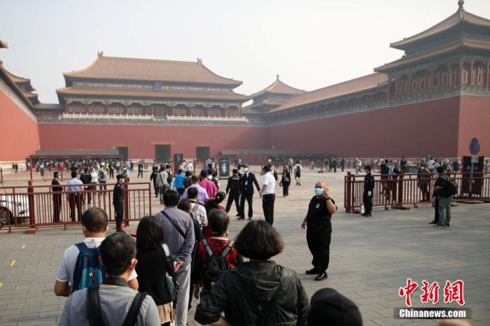 5月1日,游客排队准备进入故宫博物院。中新社记者 盛佳鹏 摄