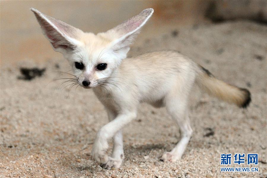 这是2017年2月15日,一只耳廓狐幼崽在新加坡夜间动物园内玩耍。 新华社发(邓智炜摄)