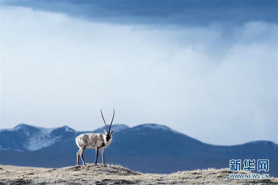 这是2015年5月19日在中国青海可可西里地区拍摄的一只觅食的藏羚羊。 新华社记者 吴刚 摄