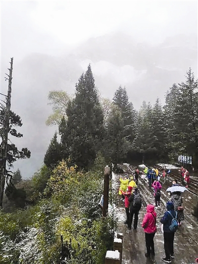 10月6日,一场雪让九寨沟进入冰雪世界。雪花从天空飘落,落在树梢,落在花上,落在栈道,落在海子里……在九寨沟景区长海等景点,天空飘着雪,地上积起了一层雪,人从雪中走过,留下串串脚印,让人置身童话世界。有网友感叹:美到犯规!