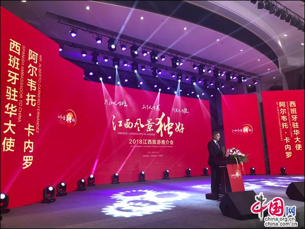 江西正在全力推进旅游强省建设,把旅游产业打造为国民经济的重要支柱产业,形成了旅游发展的浓郁氛围和强劲态势,尤其是山魂瓷韵旅游线、寻梦溯源旅游线、五色炫曜旅游线等三条精品旅游线的推出,深受国内外游客的欢迎和追捧。她说,行走在江西,处处是大地的文章、文化的符号、乡愁的记忆,希望通过这次推介会,让世界更加了解江西,让江西加快走向世界。