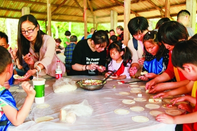活动当天,每组亲子家庭都积极完成每项亲子任务:别开生面的趣味运动会,在树林间寻找一路惊喜——“百晓生”手绘涂鸦卡,在乡里寻找素材,发挥创意和想象,完成自然艺术DIY作品,亲手包饺子,大灶生火烧饭。不少家长表示,一天的营期生活,可以让孩子们在比赛中结交伙伴,学会合作并且可以增进亲子间交流,真可谓是寓教于乐。