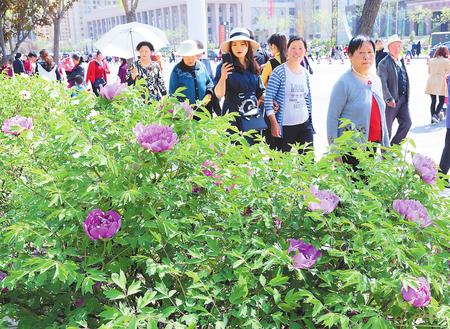 临夏牡丹素有“牡丹随处有,胜绝是河州”之誉。近几年,为了打造河州牡丹品牌,临夏市发展壮大集牡丹文化研究、种苗繁育、观光旅游、规模种植、精深加工等为一体的产业链条。4月28日,记者在位于临夏市南滨河路的十里牡丹长廊看到,缤纷的牡丹竞相开放,吸引了万千游客前来观赏。