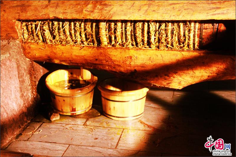 依鲁木榨菜籽油技艺 “细挑选,慢研磨;秘法炒,留纯香;木榨技,见精细;取初榨,得上品;正宗味,真地道;依古法,妙储藏”。依鲁木榨菜籽油精选取颗粒饱满的油菜籽为原料,且每批原料都是经过严格的取样和检验,保证了油菜籽的优质,确保天然醇香。榨油师傅将油菜籽清洗晾晒除杂质,放入灶台大锅中炒熟去皮,露出黄色的菜籽再碾磨成粉、上锅隔布蒸煮、出锅扎成圆饼上圈装榨,用木槌撞榨出油。判断菜籽是否炒好的方法靠经验,将油菜籽烘炒到适宜的金黄色,以产生更好菜籽油风味,气温高时竹叶青,气温一般时茶黄色,气温低时老茶黄色。炒干的菜籽放到石碾槽,用水车带动石碾将油菜籽碾细,油菜籽磨得越细出油率就越高。磨细的油菜籽放入木甑中蒸。甑中有木制甑桥、竹制甑箦,内垫干净稻草。包饼入榨取专用于包饼的铁环,用包饼的稻草捆好,放入铁环中均匀散开,倒入熟料。稻草中间留一个圆洞。木榨用老梨树干开槽而成,榨下有一孔,油从孔中流出。榨槽中有油槽,油槽有坡度,便于油从榨中流出。