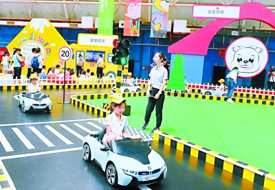“儿童交通安全训练营”在北京航空航天大学举行,孩子们在“安安魔法学院”中,与智能机器人互动,学习交通安全知识。中华慈善总会宝马爱心基金还将向全国近200所校园捐赠900套“儿童交通安全教育魔法箱“。 本报记者阎彤 摄 J124