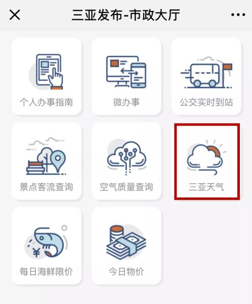 小伙伴们也可以关注“三亚发布”微信公众号,回复“台风”查看台风实时路径,还可以通过“市政大厅”查询最新天气情况哦!