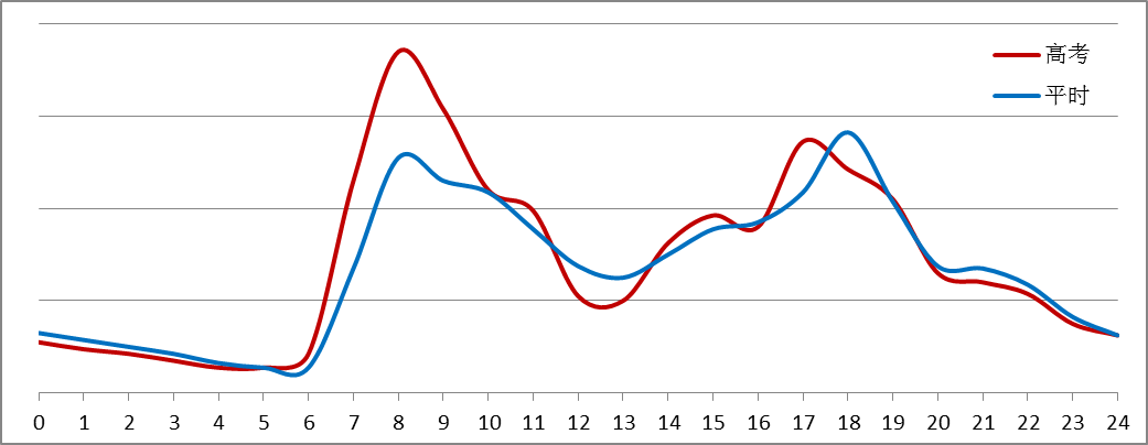 综合近年高考期间考点周边交通运行特点和近期道路通行情况,预计7:00—9:00、11:30—13:00、14:00—15:00、16:30—18:00各考点周边交通压力较大,其中7:00—9:00压力最为突出。