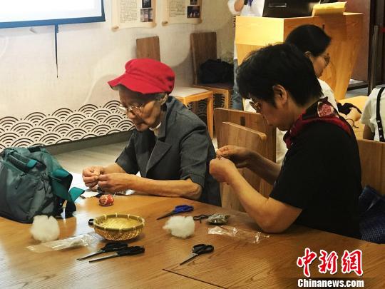 市民动手学做香囊。 王子涛 摄