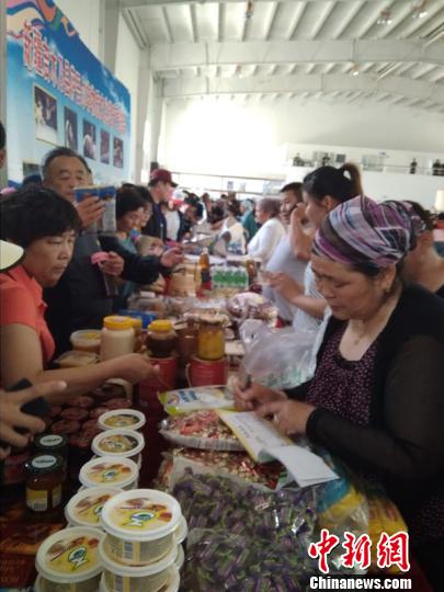 25日,在吉木乃县举办了“阿勒泰礼物展销会”。800名游客展示了极大地购物热情。长春游客李强一下买了10个哈萨克大馕。他说:“带回去也让朋友品尝。”(完)