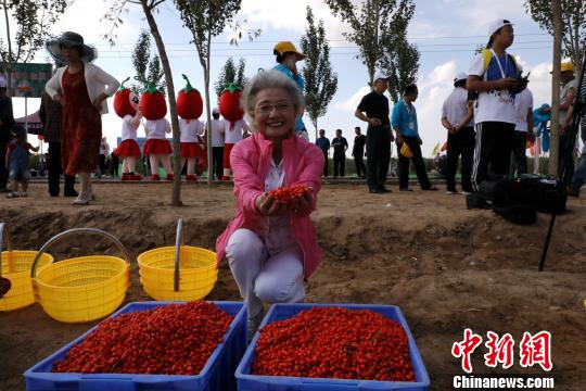 6月的宁夏中宁,万木竞秀,枸杞红透黄河两岸。历经三个月冬歇,三个月春生之后,宁夏枸杞在夏季结出今年的第一茬果实。见过枸杞干果,见过枸杞芽泡茶,挂在枝头的新鲜枸杞对于许多人来说都是新鲜物。6月26日下午,2018枸杞产业博览会采摘节在宁夏中宁玺赞枸杞种植基地拉开帷幕,吸引了来自各地的嘉宾前来体验新鲜枸杞的采摘,其中,不乏白发苍苍的老人和尚未读书的孩童。文/于翔 李佩珊