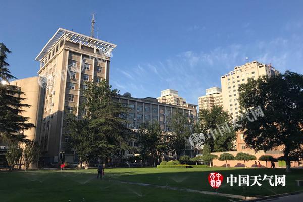 今晨,北京天空蓝天白云相伴。